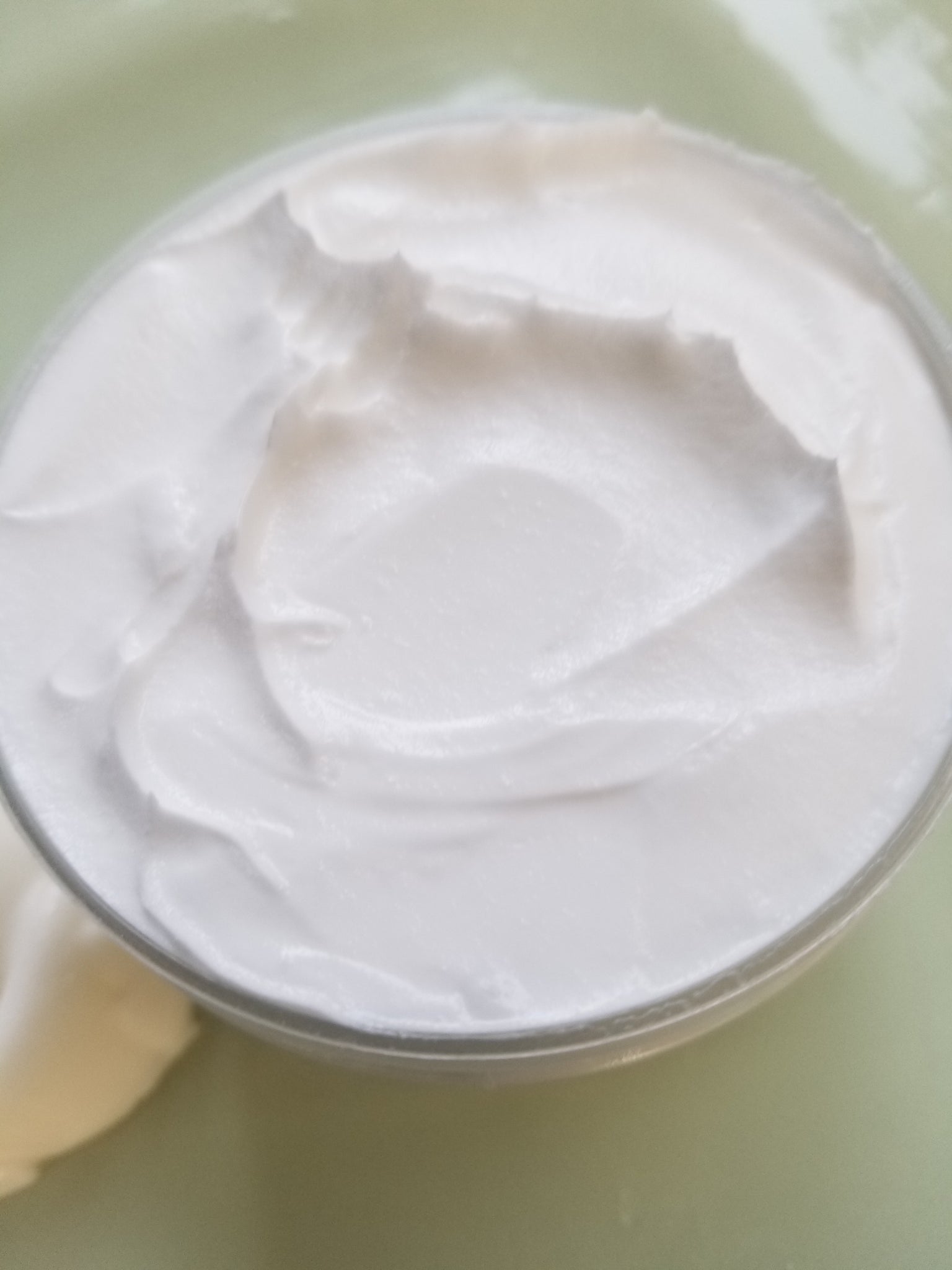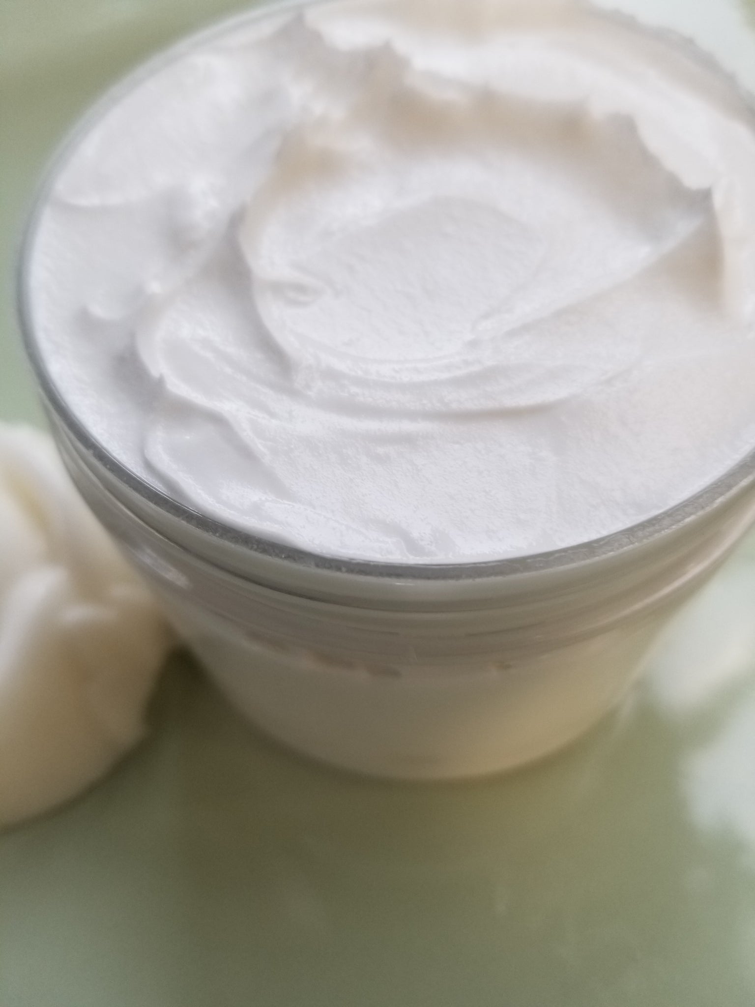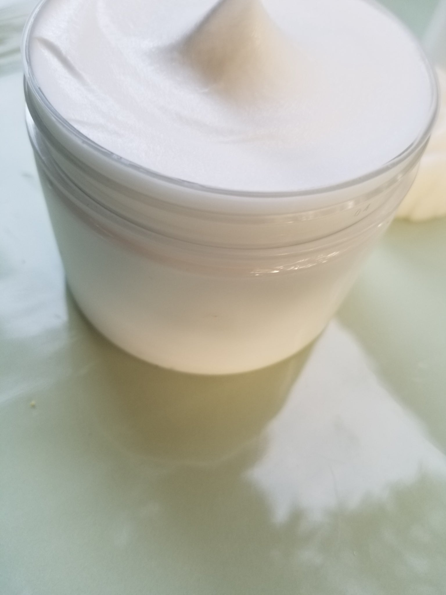 Whipped body butter. Soufflé' texture. Glides on skin without a greasy residue. No fragrance. No colorants. Vegan.